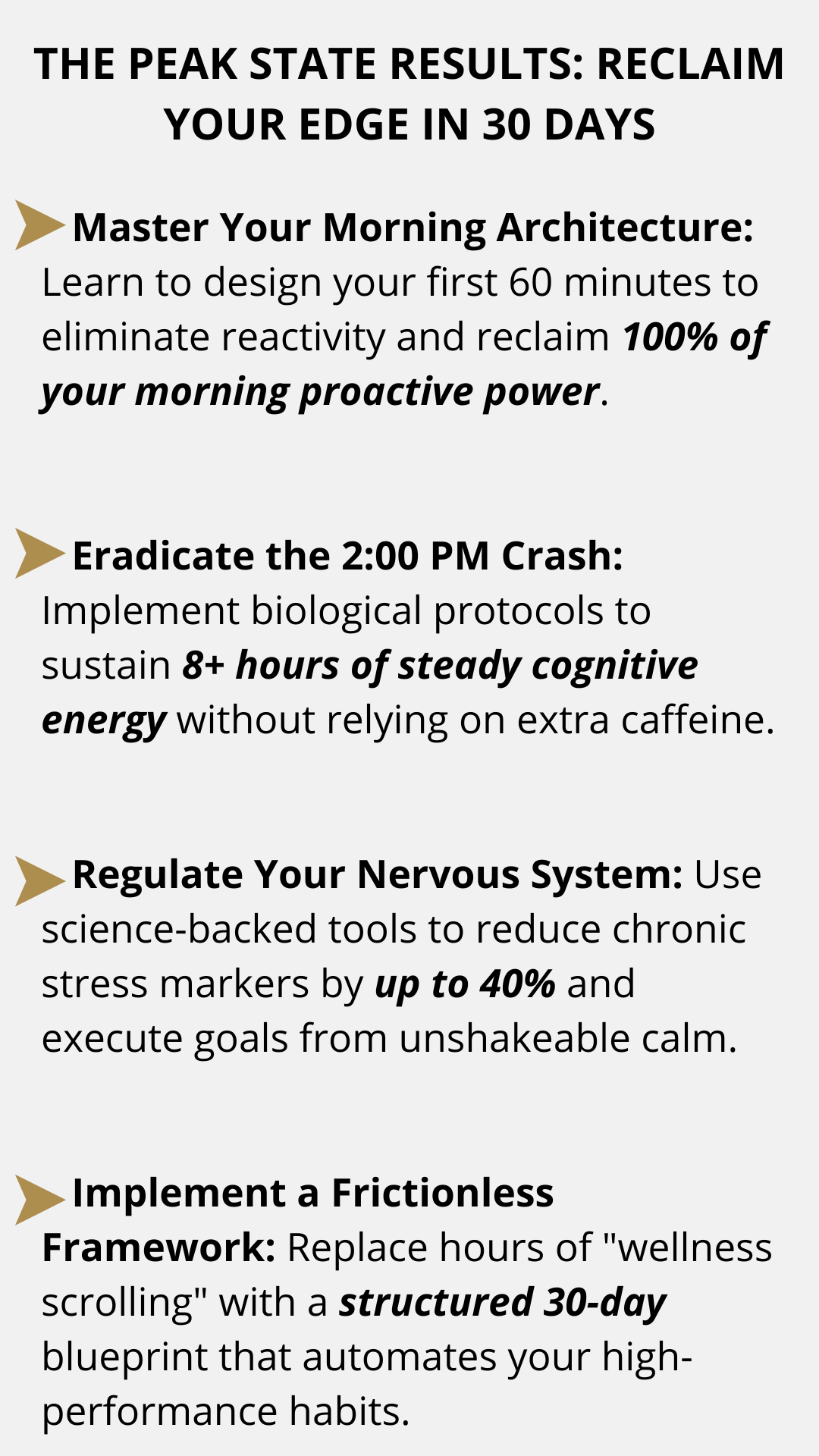 Because most planners are just empty calendars. The Peak State Protocol is a biological system. We don’t just give you a place to write; we give you the science-backed framework of what to do and when to do it to optimize your nervous system. You aren't buying a notebook; you're buying a structured brain reset.